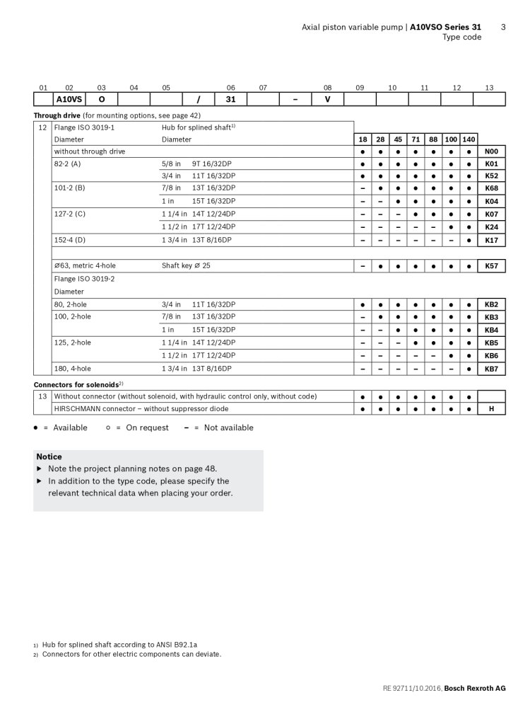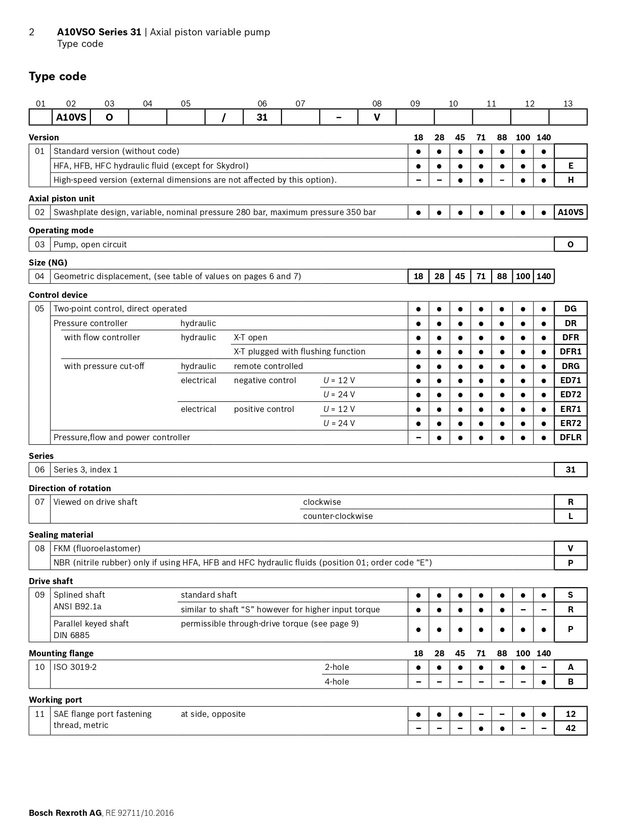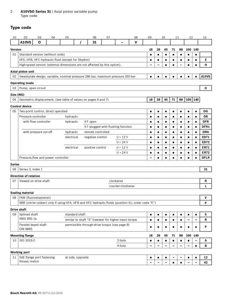 A10VSO SERIES 31 ORDERING CODE