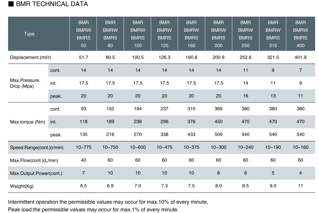 BMR Series เป็นไฮดรอลิกมอเตอร์แบบ Low Speed High Torque ที่ออกแบบตามโครงสร้าง Geroler ภายใน ให้แรงบิดสูงตั้งแต่รอบต่ำ เหมาะสำหรับงานที่ต้องการกำลังต่อเนื่องและความทนทานในสภาพการใช้งานหนัก
