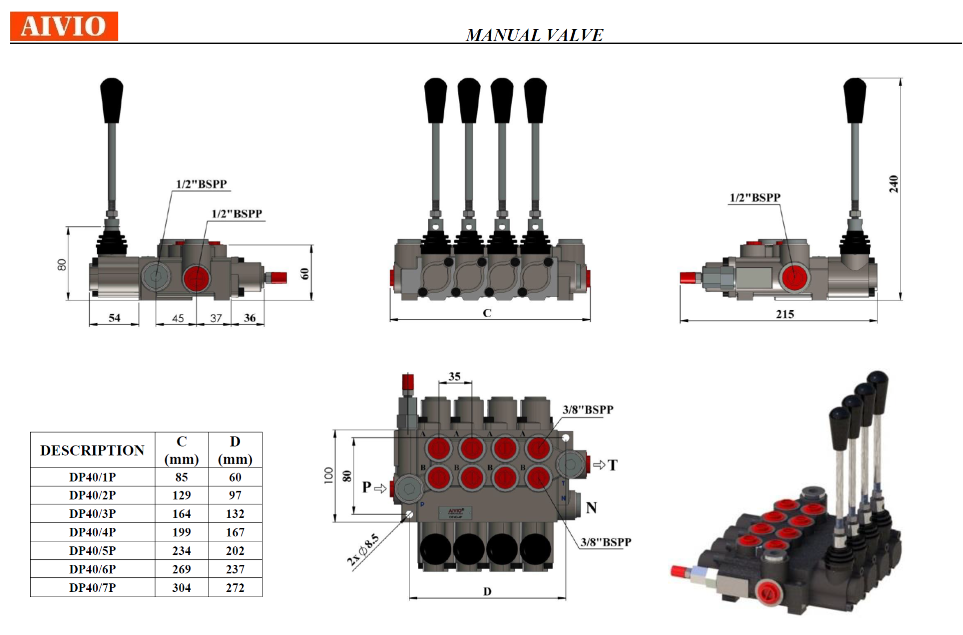 รุ่น DP40 รองรับ flow rate 40 lpm รูน้ำมัน 3/8" แบบ Monoblock จำนวนแกนสูงสุด 7 แกน
