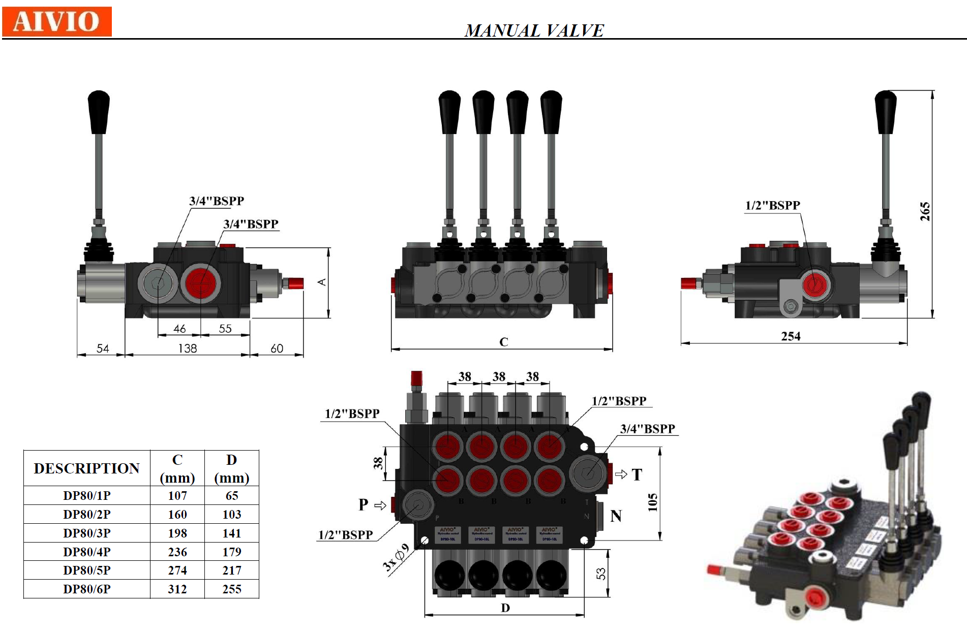 รุ่น DP80 รองรับ flow rate 80 lpm รูน้ำมัน 1/2" แบบ Monoblock จำนวนแกนสูงสุด 6 แกน