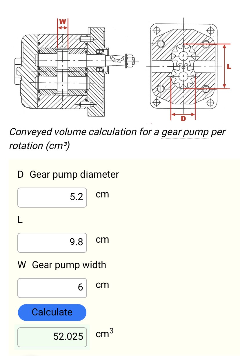 จากนั้นเข้าไปที่ https://www.hk-hydraulik.com/en/hydraulics-calculator เพื่อกรอกค่าเราก็จะสามารถทราบ displacement ของปั๊มได้แล้ว